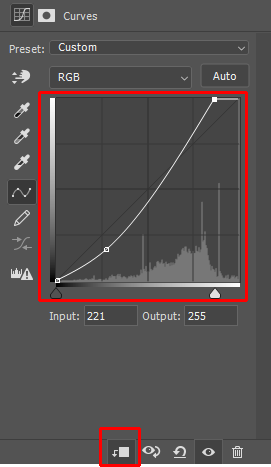 커브 조정 레이어 속성 창의 하단에 있는 마스크아이콘을 선택해서 바로 아래 있는 강아지 레이어에만 커브 효과가 적용되도록 합니다.
