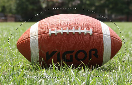 먼저 잔디 사진을 불러온 후 라쏘 툴로 럭비공을 포함하는 영역을 아래 그림과 같이 선택해 줍니다. 더 정확하게 따고 싶으시면 그렇게 하셔도 되지만 전 적당히 선택해서 시간을 절약(?)하는 방법을 선택했습니다.^^