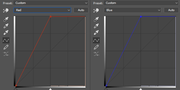 이제 기본적인 Curves를 이해하셨으니 좀더 깊게 들어가 보겠습니다. 단순히 밝기뿐만 아니라 색상을 조절하기 위해서는 Red, Green, Blue 채널별로 이동하여 조절할 수 있습니다.