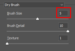Brush Size는 붓의 크기를 나타내는 항목으로 수치를 높일수록 큰붓으로 그린 러프한 느낌이 듭니다. Brush Detail 항목은 붓의 디테일을 설정하는 것으로 수치를 높일수록 붓 칠이 더욱 촘촘해 집니다. 마지막으로 Texture는 재질감이 드러나도록 설정하는 항목이라고 생각하시면 됩니다.