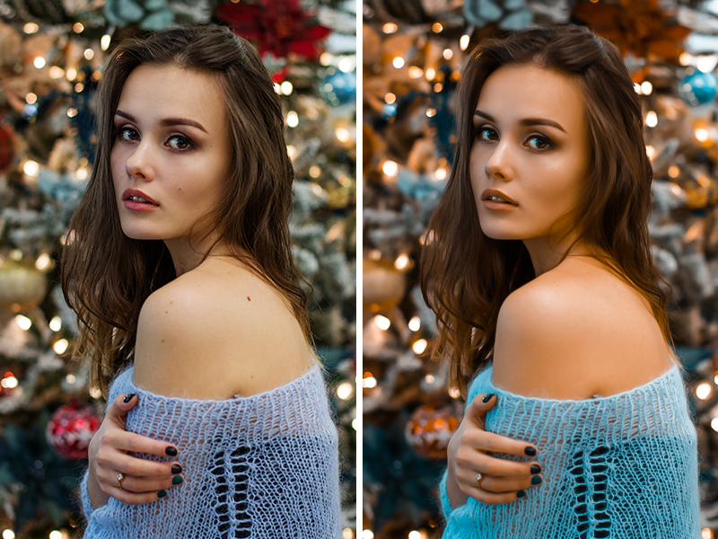 글로시한 느낌을 주기위해 얼굴과 어깨의 피부에 하이라이트를 추가한 후 원본과 비교해 보았습니다.