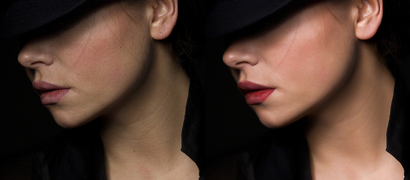 지금까지 보정한 이미지는 아래와 같습니다. 머리카락 등의 디테일은 살아 있으면서 잡티는 없애고 피부는 한층 부드러워졌습니다. 앞서 말씀드린 주파수분리만큼은 아니지만 솜털도 보이면서 자연스럽게 된 거 같습니다.