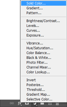 패스를 수정해 주셨으면 레이어 창에서 단색(Solid Color)을 선택해 주십니다. [ Create new fill or adjustment layer > Solid Color ]