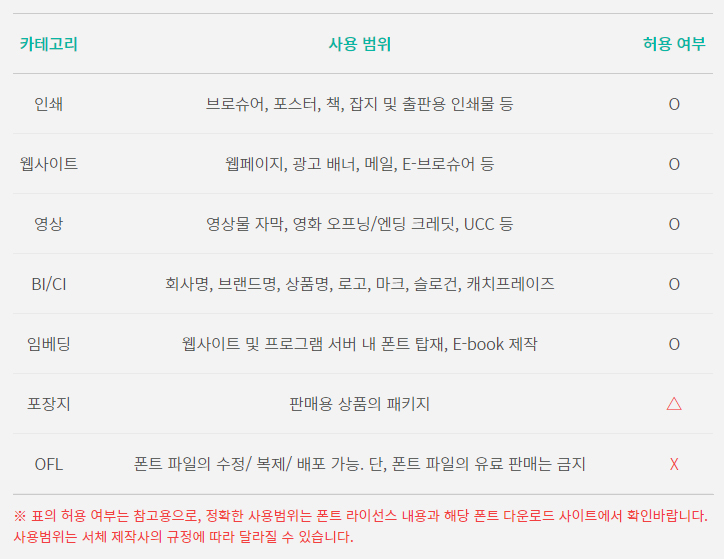 - 임의 수정/개작하여 글꼴을 재배포하는 것은 금지!!!