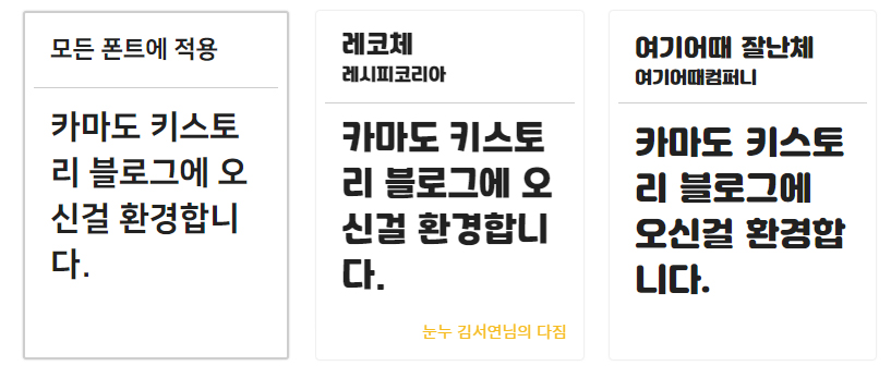 위쪽에 있는 검색바에서 바로찾기 원하는 폰트를 검색할 수 있습니다.