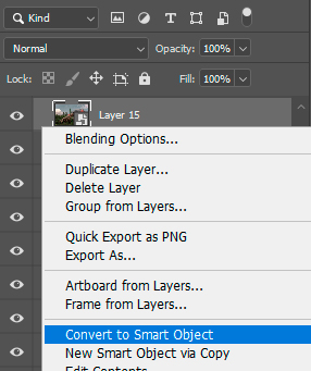 전체적으로 색상이나 명도 대비등을 보완해 보겠습니다. 레이어 창에서 제일 위에 있는 Color Lookup2 레이어가 선택된 상태에서 키보드 단축키 Ctrl+Alt+Shift+E를 눌러 줍니다. 현재 보이는 화면 전체를 캡처해서 새로운 레이어로 추가되었습니다. 캡처된 레이어에서 오른쪽 마우스 버튼을 누른 후 스마트 오브젝트로 변경해 줍니다. (스마트 오브젝트로 변경해 주면 이후 적용된 다양한 필터 효과들을 다시 열어서 재조정할 수 있습니다.)