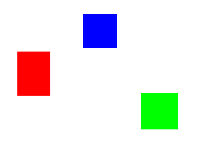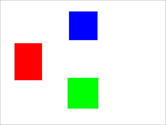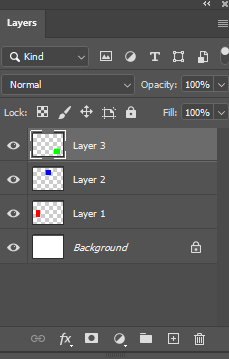 빨간색 레이어를 만들어준 과정을 반복하여 파란색과 초록색 레이어를 만들어 줍니다. 단, 파란색과 초록색의 위치는 아래 이미지처럼 우측 하단, 중앙 상단에 적당한 간격을 유지하여 배치해 줍니다.