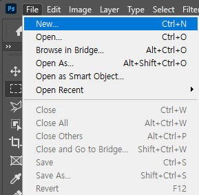 포토샵을 실행시킨 후 파일메뉴에서 New를 선택하여 새로운 문서를 생성할 예정입니다.