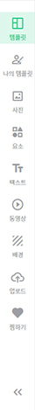 - 사진, 요소, 텍스트, 동영상, 배경은 디자인 항목을 추가할 수 있는 툴들입니다.