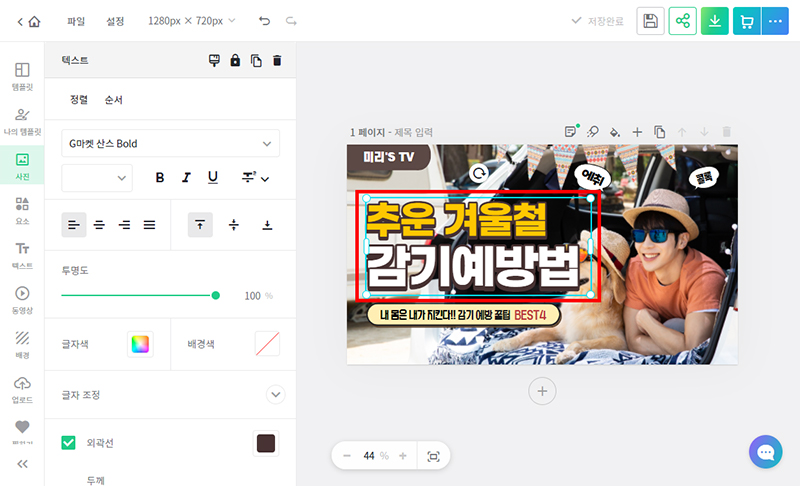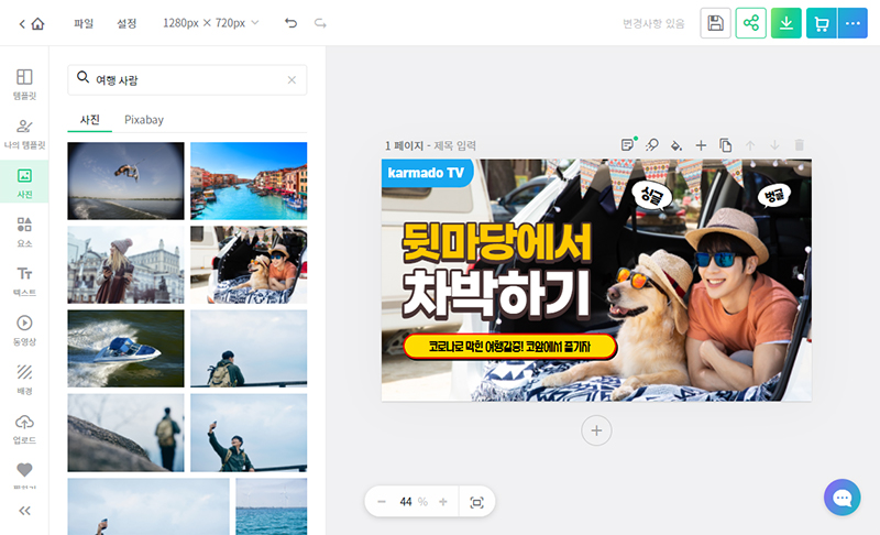 유튜브 섬네일 디자인하기 두 번째 강좌입니다. 이전 강좌에서 템플릿을 불러오고 기본 설정을 한 후 배경에 사진을 추가 배치하는 과정까지 해 보았습니다. 오늘은 다른 디자인 요소들의 수정과정과 결과물을 저장하고 유튜브에 적용하는 과정까지 완성해 보겠습니다.