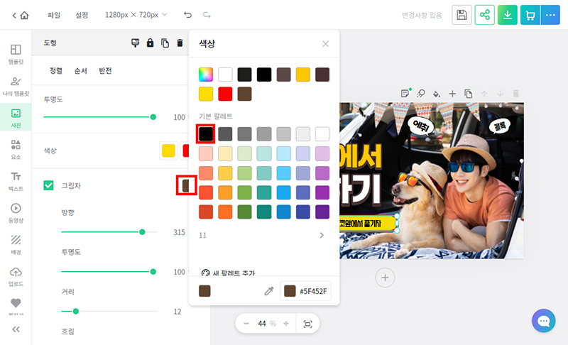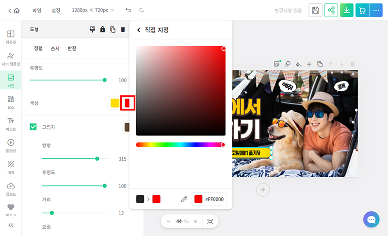 배경이 너무 화려하면 그림자를 추가로 설정해서 더욱 주목도를 높일 수 있습니다.