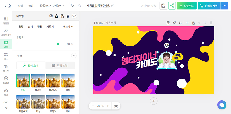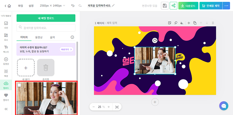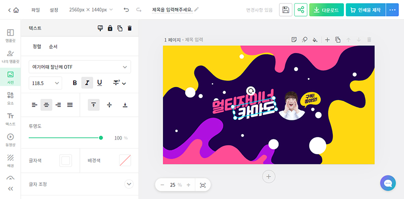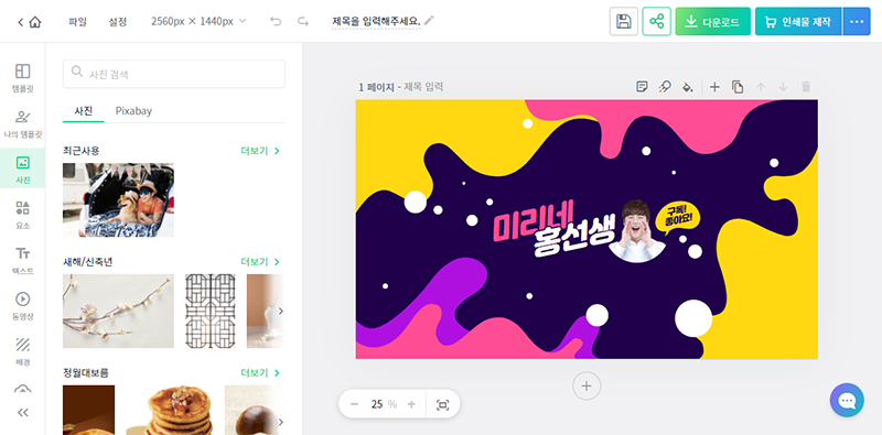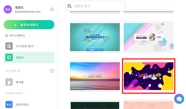 섬네일 확대기 보기 창에서 '이 템플릿 사용하기'버튼을 클릭해서 디자인 문서에 적용해 줍니다.