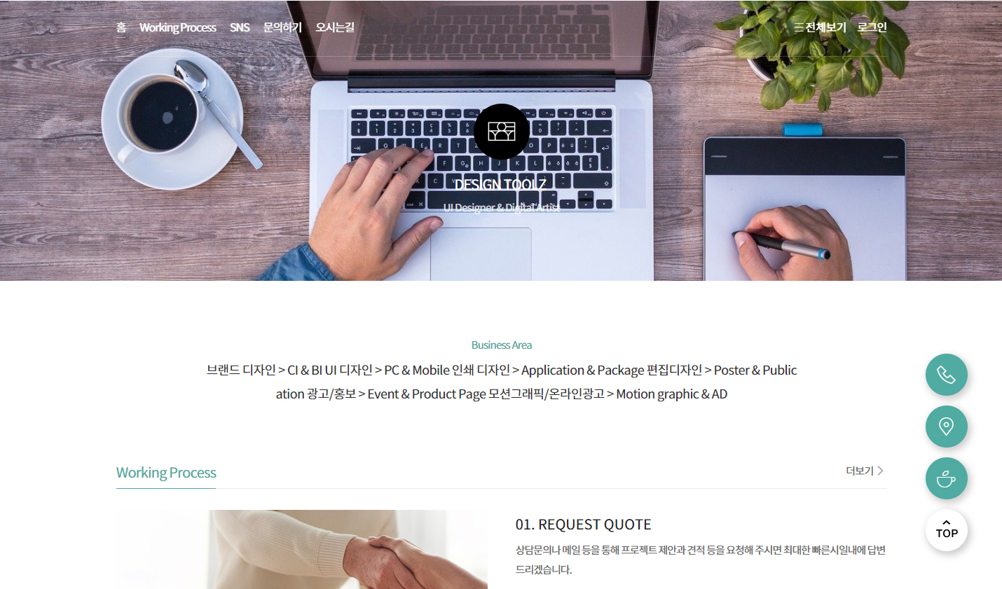 다행히 모두 홈페이지는 모바일 화면 제작을 하면 자동으로 PC화면도 동기화하여 보여주고 있습니다.