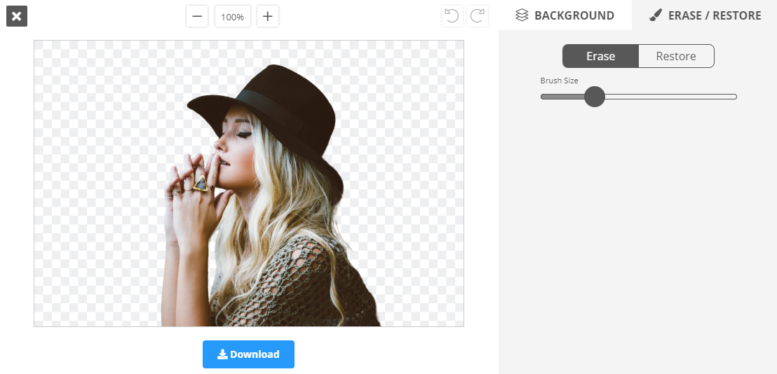 ERASE/RESTORE탭을 선택하면 브러시 사이즈를 조절하면서 누끼 영역을 추가하거나 삭제할 수 있습니다. 섬세한 조절은 불가능하기 때문에 불필요한 부분을 과감히 없애고자 할 때만 사용하면 될 것 같습니다.