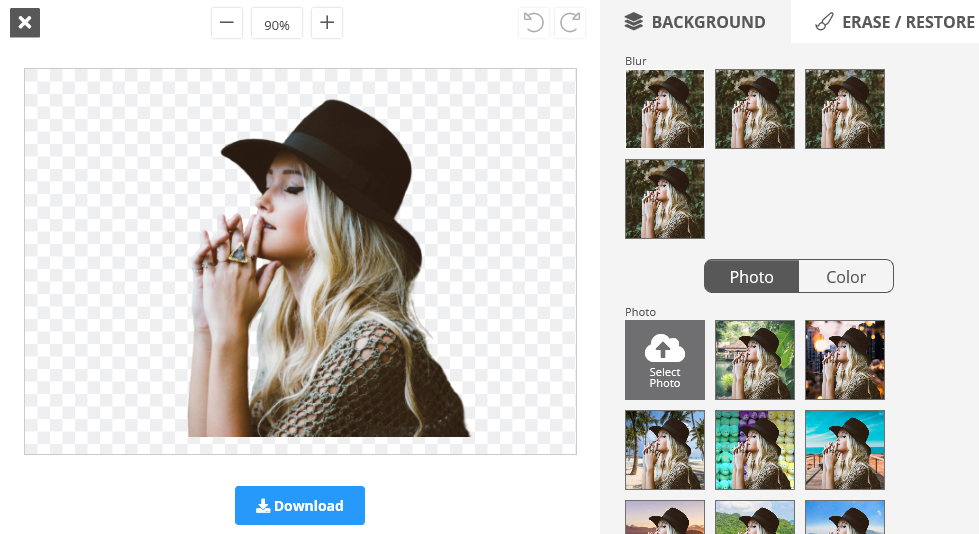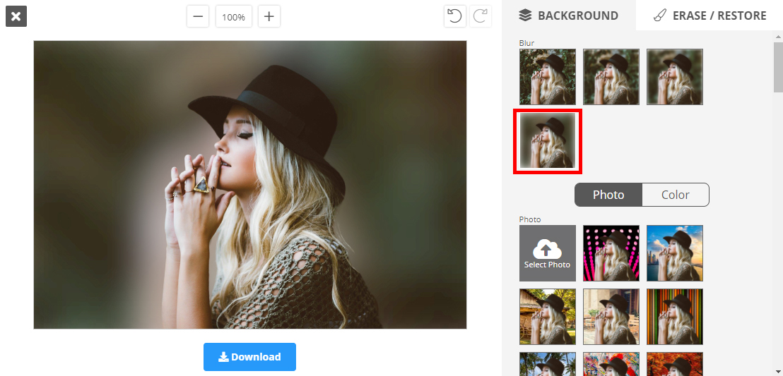 배경에 다른 사진을 합성할 수 있ㅅ브니다. 기본 세팅된 라이브러리도 있고 'Select Photo'를 사용하여 별도로 배경을 불어와서 적용할 수도 있습니다.
