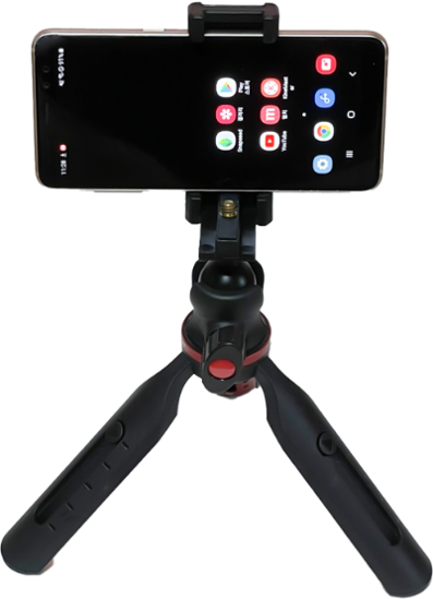 제품을 위한 환경 세팅이 끝났다면 다음으로 필요한 것은 삼각대입니다. 삼각대를 사용하면 미세한 손떨림에 의한 흔들림을 없애고 선명한 사진을 찍을 수 있습니다. 또한 정해진 위치에 세팅한 채로 제품만 바꿔가면서 동일한 구도로 편안하게 찍을 수 있습니다. 삼각대도 여러 가지 종류가 있는데 서서 찍는 것이 아니라면 탁상용 삼각대를 추천드립니다. 대부분은 제품을 책상 위나 바닥에 놓고 찍는 경우가 많기 때문에 낮고 안정적인 삼각대가 좋습니다. 아래 사진도 탁상용 삼각대인데 약간의 높이 조절이 되며 수평계도 있기 때문에 좀 더 정확한 구도를 잡을 수 있습니다. 대부분의 제품은 핸드폰 거치뿐만 아니라 디지털카메라 거치를 겸하고 있기 때문에 양쪽으로 동시에 사용하기 좋습니다.