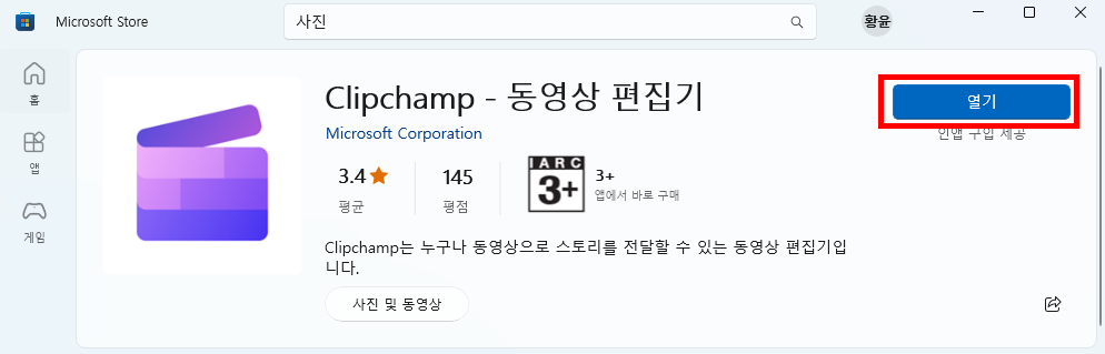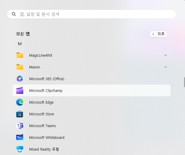 다시 본론으로 돌아오겠습니다. 윈도우 동영상 편집기인 Clipchamp가 설치되어 있어야 합니다. 아래처럼 윈도 앱에 Microsoft Clipchamp 가 설치되어야 합니다.