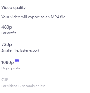 서장 옵션는 총 4가지입니다. 고화질을 원하시면 HD화질인 1080p를 선택하시면 됩니다. (15초 이하의 동영상은 GIF로도 저장되네요.)
