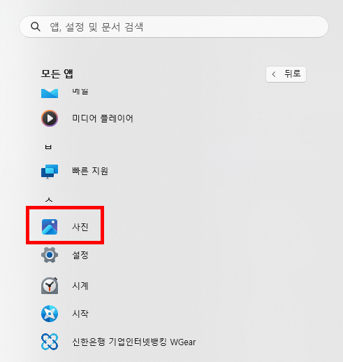 1. 윈도운 앱 리스트에서 사진앱을 선택합니다.