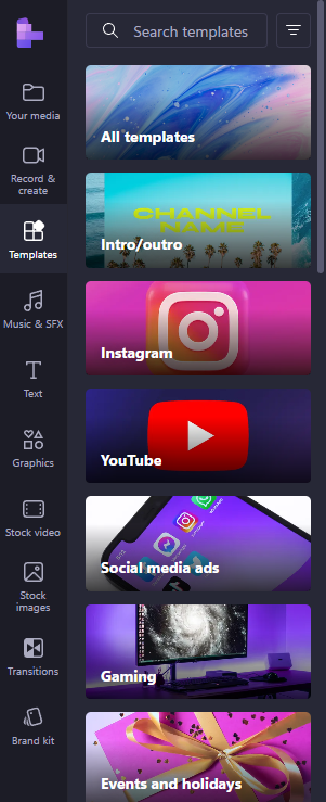 이외에도 템플릿, 음악, 자막, 스톡 비디오/이미지 등 많은 기능과 자료들이 있으니 재미있는 동영상을 만들 수 있을 겁니다.