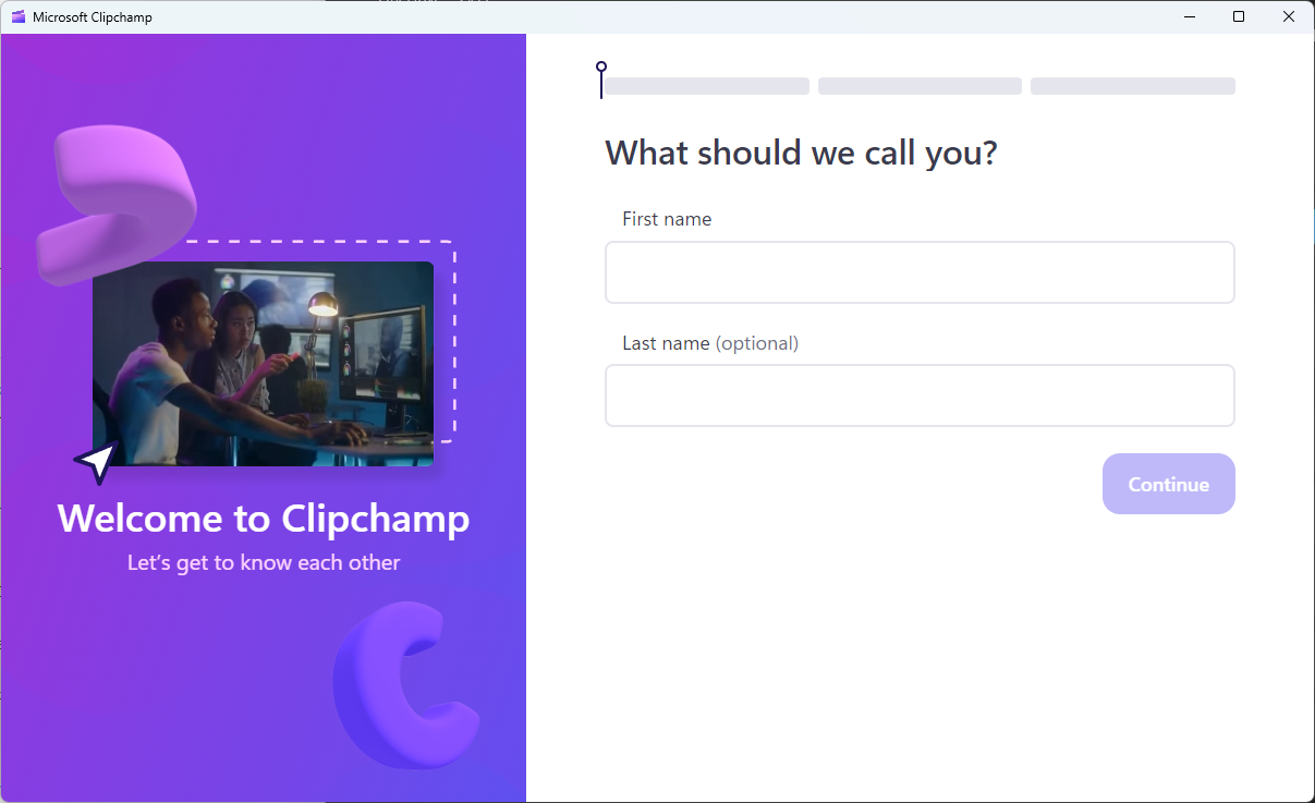 5. 이름과 성을 원하는 텍스트로 입력한 후 [Continue]를 눌러 주세요. 다음화면에서 동영상 내용의 종류를 물어보는데 아무거나 선택하시면 됩니다.
