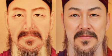 반드시 사진일 필요는 없습니다. 아래 사진은 이순신장군님의 일러스트를 컬러로 실사화를 해 본 결과물입니다. 눈꼬리 때문인지 전체적인 배치는 일치하지만 인상이 좀 달라보입니다. 필요에 따라서 포토샵 작업을 병행해야 할 듯합니다.