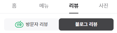 사업자의 업종에 따라 네이버 플레이스의 메뉴 구성이 다르기 때문에 최종 연결된 블로그는 서로 다른 메뉴에 위치합니다.