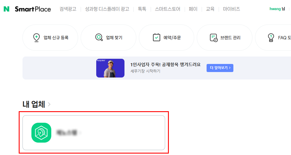 앞서 업체 등록과 정보를 입력했다면 다음 재접속 시에는 아래처럼 내 업체가 등록된 화면을 볼 수 있습니다.