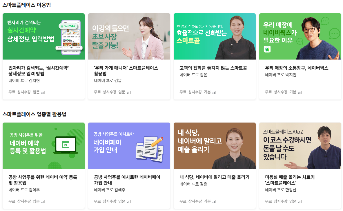 이 외에도 네이버에서 제공하는 다양한 서비스와 마케팅, 솔루션 등이 있습니다. 스마트플레이스에 접속 후 왼쪽의 '비즈니스 스쿨'메뉴를 클릭하면 다양한 정보와 활용 등을 알려주는 동영상이 많이 있습니다. 꼭 한 번씩 시청하시고 적용해 보시길 바랍니다.