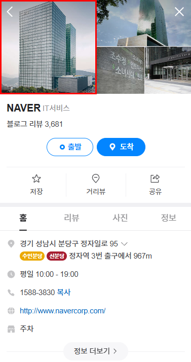 네이버 스마트 플레이스는 네이버 지도에서 업체를 검색하면 나오는 정보로 이를 잘 이용하면 지역기반의 마케팅에 큰 도움이 됩니다. 플레이스는 이동 중이거나 근거리에서 빠르게 검색하고 방문하는 성향이 있기 때문에 다른 업체와 구별되는 차별화된 구성이 중요합니다. 리뷰는 업체에서 자체적으로 통제할 수 있는 글이 아니므로 나머지 영역에서 차별화를 주어야 하는데 동영상 노출이 그중에 하나입니다. 네이버 플레이스의 상단에는 보통 아래 사진처럼 업체의 사진을 포트폴리오처럼 보여주는 데 이 영역에 동영상을 노출할 수 있습니다.