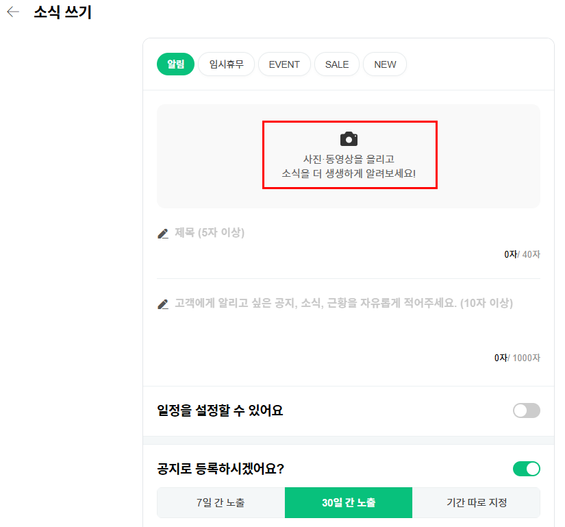 새 소식을 이용해서 공지글을 등록했기 때문에 당연히 소식 메뉴에도 동시에 노출이 됩니다.