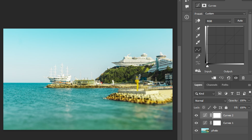 한 개의 커브는 어둡게 한 개의 커브는 밝게 해 주었더니 이미지가 원상태로 되었습니다. 실제로 이미지를 크게 확대해 보아도 픽셀이 깨지거나 왜곡되는 현상을 발견하지 못하였습니다.