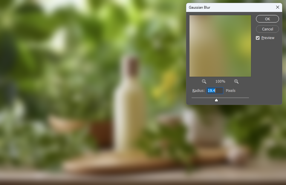 돋보기아이콘을 이용해서 화면을 확대/축소해 보면서 흐림 정도를 관찰합니다. 이번 이미지는 19.4를 적용하였습니다. 전체적용 이미지는 아래와 같습니다.