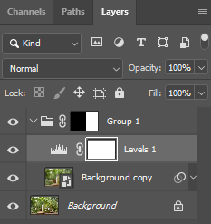 앞서 생성한 레이어그룹 안에 레벨조정레이어를 생성했기 때문에 그룹마스크 영역에만 효과가 적용되어 보입니다.