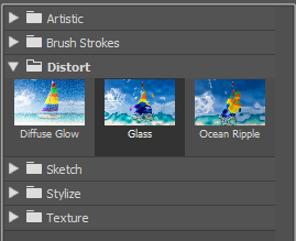 다양한 필터 효과 중에서 Distort 폴더의 Glass효과를 선택합니다.
