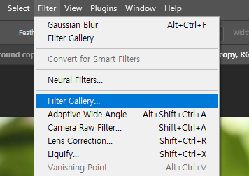 유리효과를 적용하기 위해 Filter > Filter Gallery 메뉴를 실행합니다.