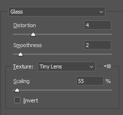Distortion항목에서는 유리의 왜곡의 강도를 조절할 수 있습니다. 숫자가 올라갈수록 더욱 대비가 강렬해집니다. Smoothness는 유리 표면의 요철(또는 거친 정도)을 조절할 수 있습니다. 숫자가 올라갈수록 더욱 매끄러워집니다. 본 이미지에서는 각각 4와 2로 적용했습니다.