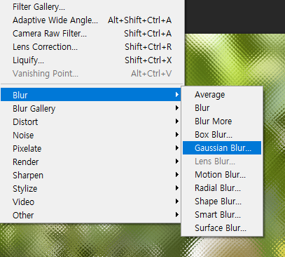 Background copy 레이어가 선택된 상태에서 Filter> Blur> Gaussian Blur를 선택합니다.