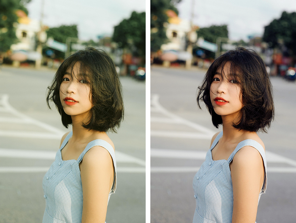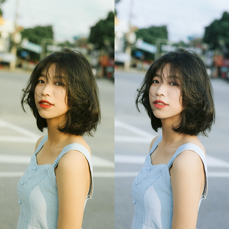 샘플 사진은 단발머리 여성이 있는 사진입니다. 작가가 의도한 분위기로 잘 연출된 사진입니다. 후보정을 한 것인지 렌즈필터를 끼고 촬영을 한 것인지 전반적으로 초록색과 연두색 계열의 색상이 느껴집니다. 지금의 느낌이 개성 있긴 하지만 화이트밸런스를 맞추어서 원본 사진에 가깝게 보정해 보겠습니다.