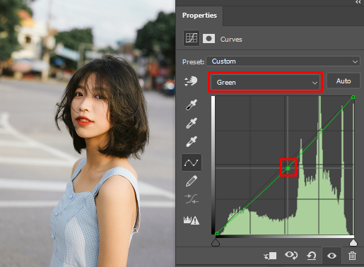 초록색을 빼 주기 위해서 Green채널을 선택한 후 직선의 중간을 우하단으로 이동해 줍니다.