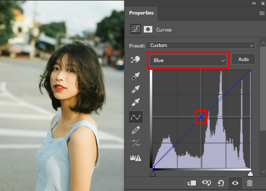 이번에는 Curves 메뉴를 이용해 보겠습니다. 원리는 6번의 방법과 같습니다. 노란색과 초록색을 빼 주면 됩니다.