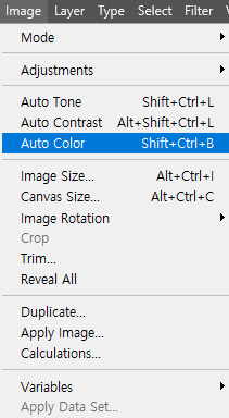 메뉴에서 Image > Auto Color 를 적용해 줍니다. 단축키는 Shift + Ctrl + B 입니다.