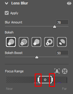 Focus Range의 직사각형을 드래그하면 초점이 맞는 영역이 밝은 회색 그라데이션으로 바뀝니다. 흰색영역이 원하는 위치로 이동될 때까지 직사각형을 드래그해서 초점을 맞춰주면 됩니다. 초점을 근거리, 중거리, 원거리로 변경하면서 사진을 변경해 보았습니다.