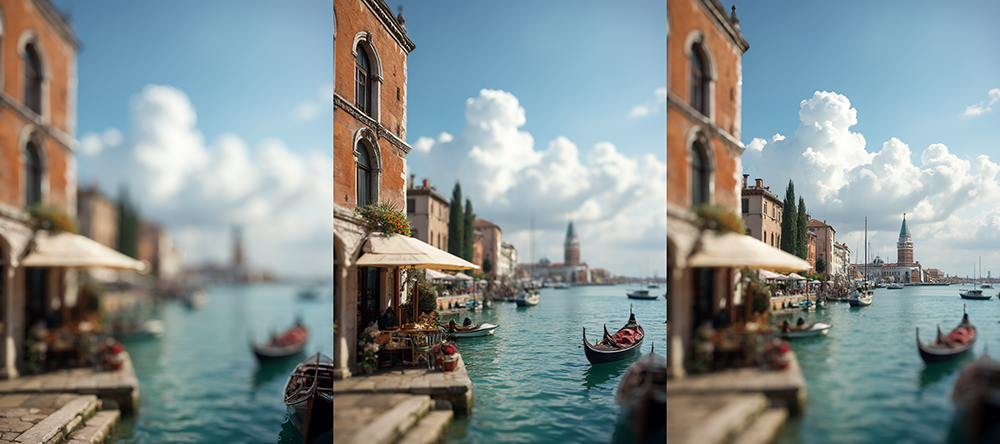 오늘 사용할 사진은 베니스 풍경의 멋진 사진입니다. 심도(Depth)가 깊은 전체적으로 선명한 사진입니다. 이 사진에 사실적인 아웃포커싱 효과를 적용해 보겠습니다.