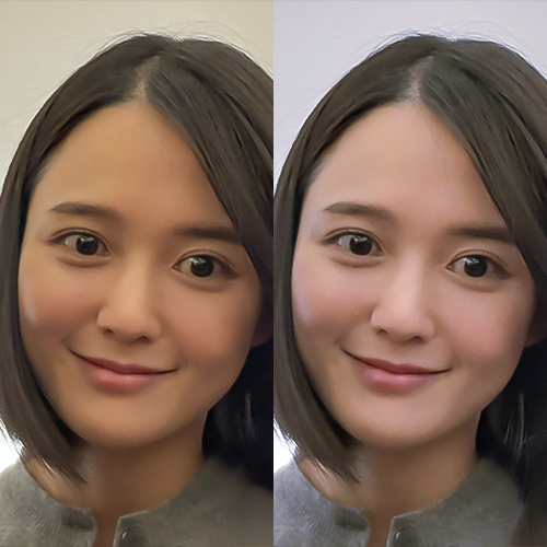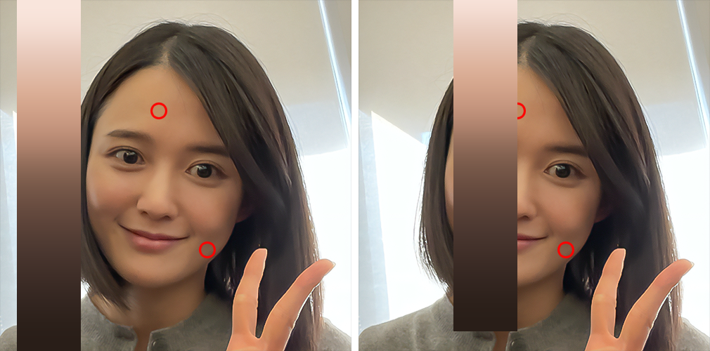 얼굴 피부색에서 밝은 영역과 어두운 영역 두 군데를 기준으로 피부톤을 보정해 주었더니 밝은 영역만 보정했을 때보다 더욱 정확하게 보정이 되었습니다. 그리고 원래의 피부색으로 보정해 주니 화이트밸런스도 자연스레 보정이 되었습니다.