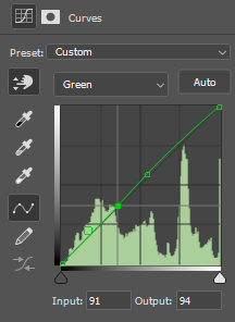 동일한 방법으로 Green 채널의 Output값을 94로 수정합니다.