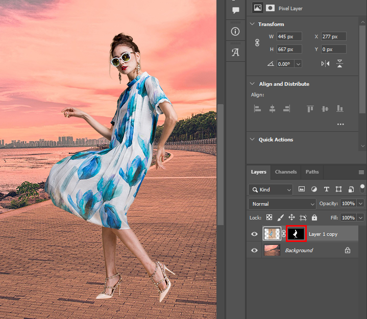 바에서 Remove background(배경제거)를 클릭하면 자동으로 레이어 마스크가 생성되면서 모델만 남게 됩니다.