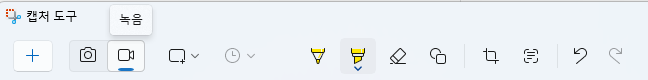동영상을 캡처하려면 캡처도구 앱을 실행한 후 메뉴에서 녹음 메뉴를 선택합니다. 키보드 단축키 '윈도우기+Shift+S'를 누른 후 녹음 버튼을 눌러도 됩니다.