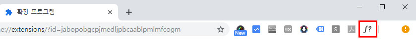 브라우저에 확장프로그램이 추가된 후 브라우저창을 닫고 다시 실행해 주십시요. (기존 브라우저에서는 추가결과 적용이 안되더라고요) 브라우저 창 우측상단에 'f?' 모양의 아이콘이 보이실 겁니다. 이 아이콘이 보이신다면 제대로 설치가 된 것입니다.