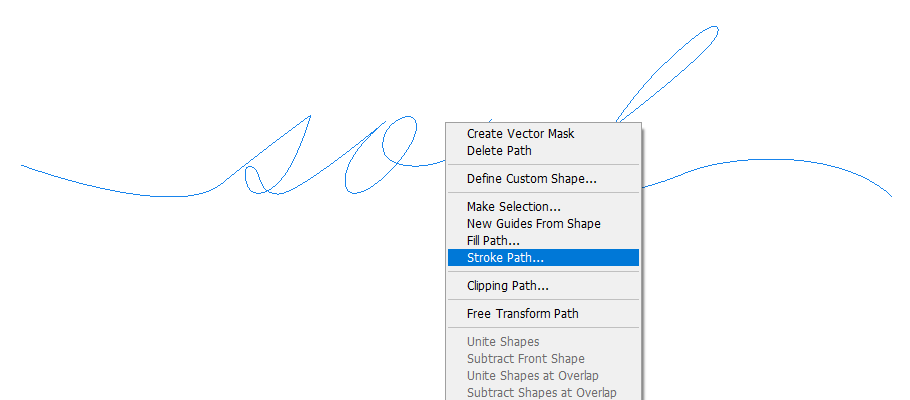 툴 바에서 path selection tool이나 direct selection tool을 선택한 후 화면의 아무 곳에서나 우측 마우스버튼을 클릭합니다. 아래 이미지처럼 여러 메뉴가 나타나는데 ‘Stroke Path’를 선택해 줍니다.